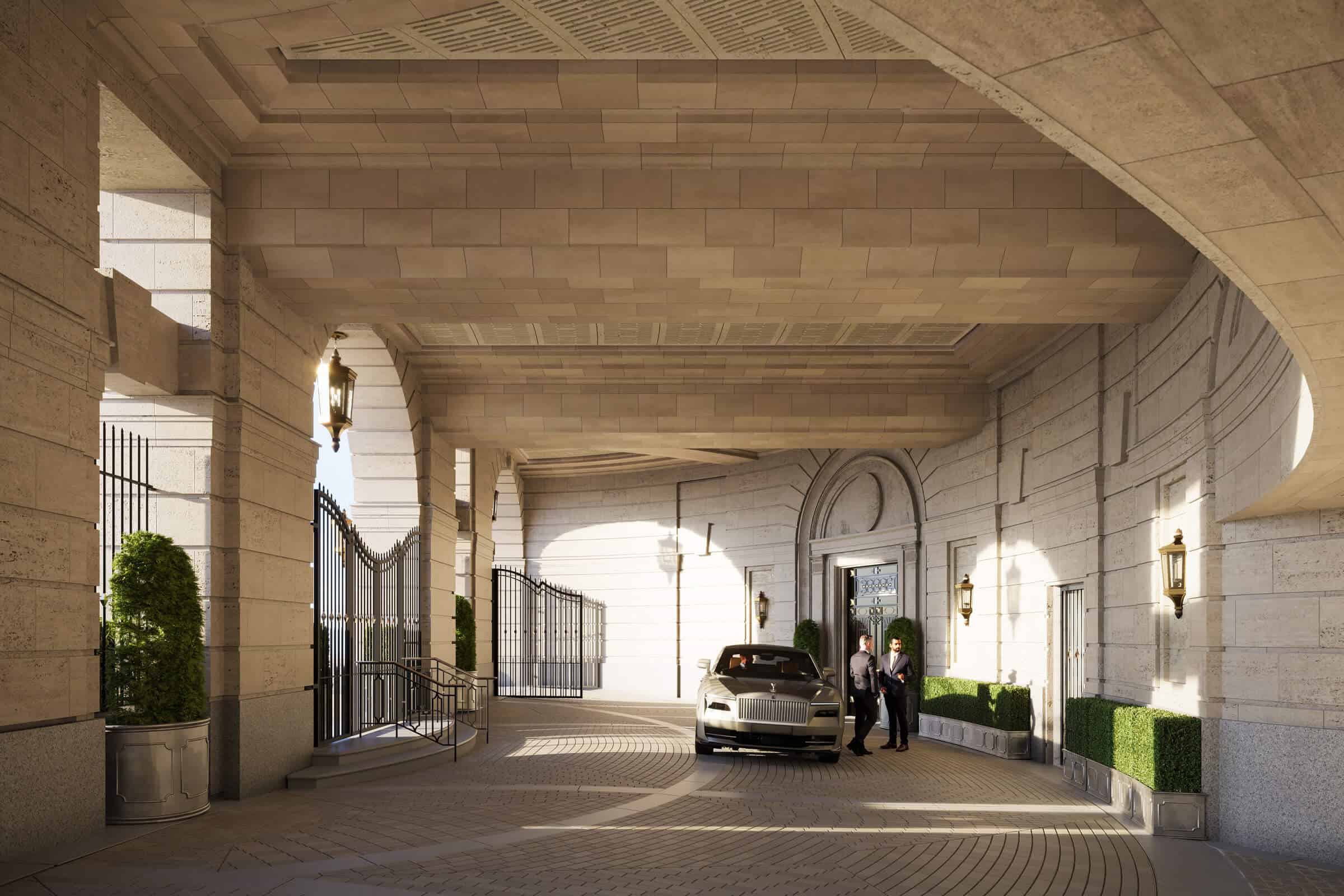 1 Mayfair, a seven-storey apartment block in London’s prestigious Mayfair district, is set to redefine luxury living upon its completion in 2026. Designed by Robert A.M. Stern Architects, the development replaces a post-war multi-storey car park, restoring the scale and rhythm of the historic neighbourhood. The building’s design features a six-storey mansion house combined with a four-storey townhouse-like wing, framing two sides of a reconstituted Audley Square. The façade along Hill Street presents a unified mass with entry porches, stacked bay windows, and a colonnade of paired columns, reminiscent of a Georgian terrace. On Waverton Street, a loggia shelters a motor court leading to a second lobby, connected to the Audley Square entry by an elliptical stair and passageways encircling a central garden court.