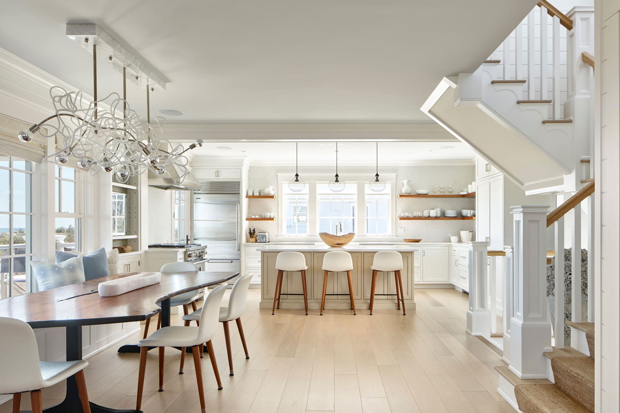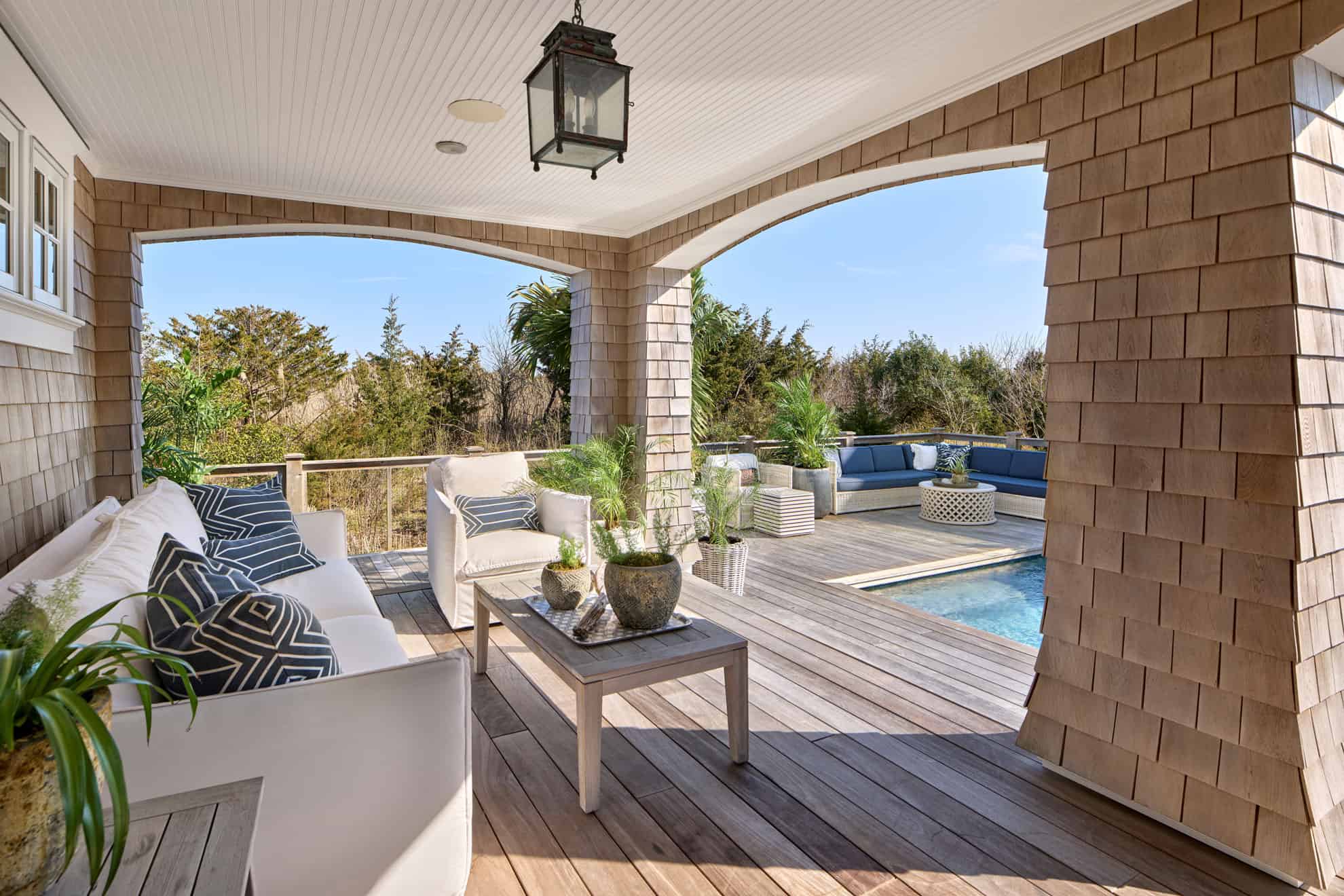 The residence’s exterior is characterized by its shingle-style design, a hallmark of coastal architecture that evokes a sense of timelessness and elegance. The use of shingles not only contributes to the aesthetic appeal but also provides functional benefits, such as durability and ease of maintenance. The design thoughtfully considers the local climate and environmental conditions, ensuring the home remains resilient and comfortable throughout the year.