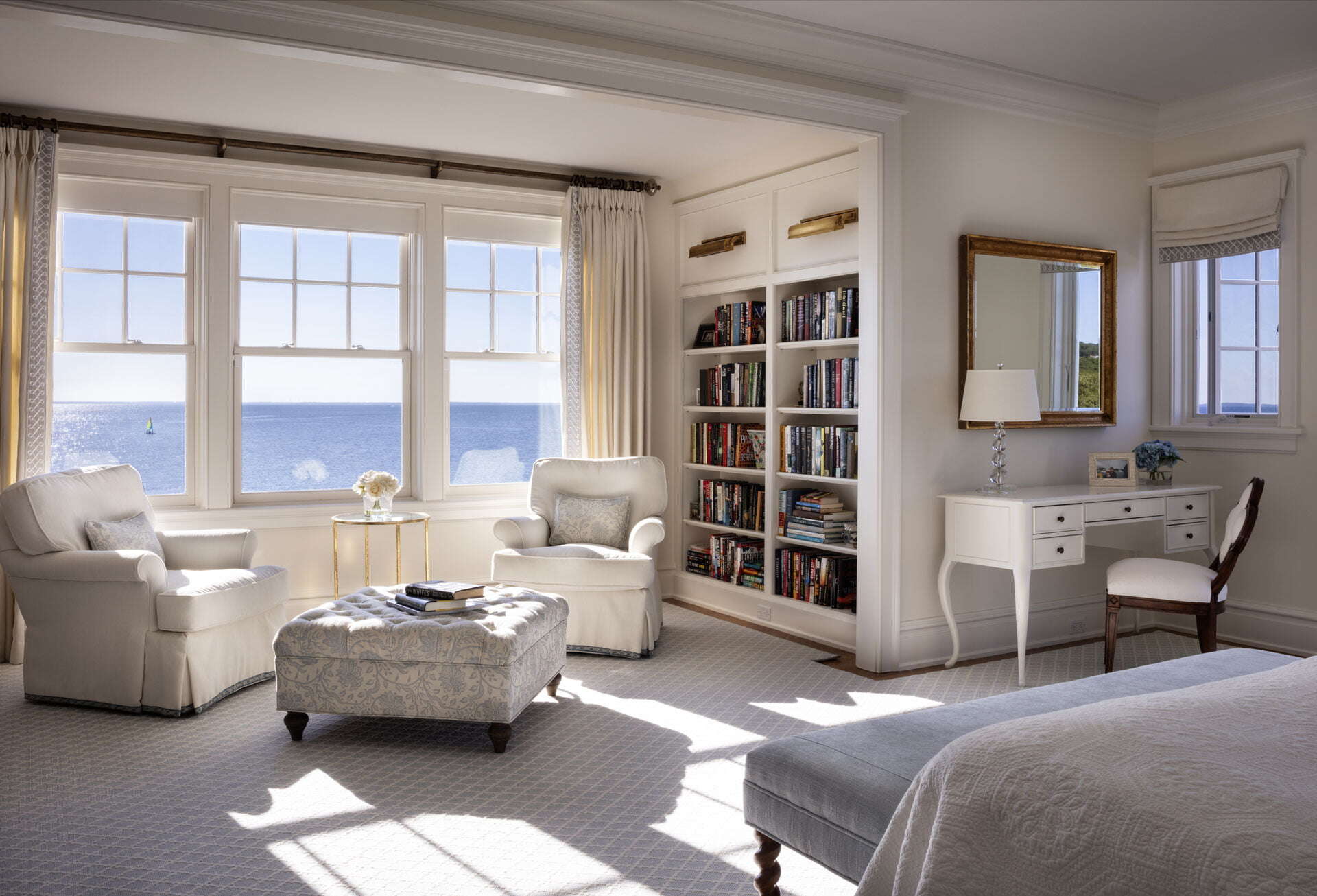 The interior design, led by Mary Hastings Interiors, focuses on creating a calm and gracious retreat. The use of a tone-on-tone material palette and an open floor plan contributes to a sense of serenity and spaciousness. The design ensures that every room is beautifully proportioned, with an abundance of natural light and openness, aligning with the firm’s goal that every house should be as much of a delight in a decade as it is on the day you move in.
