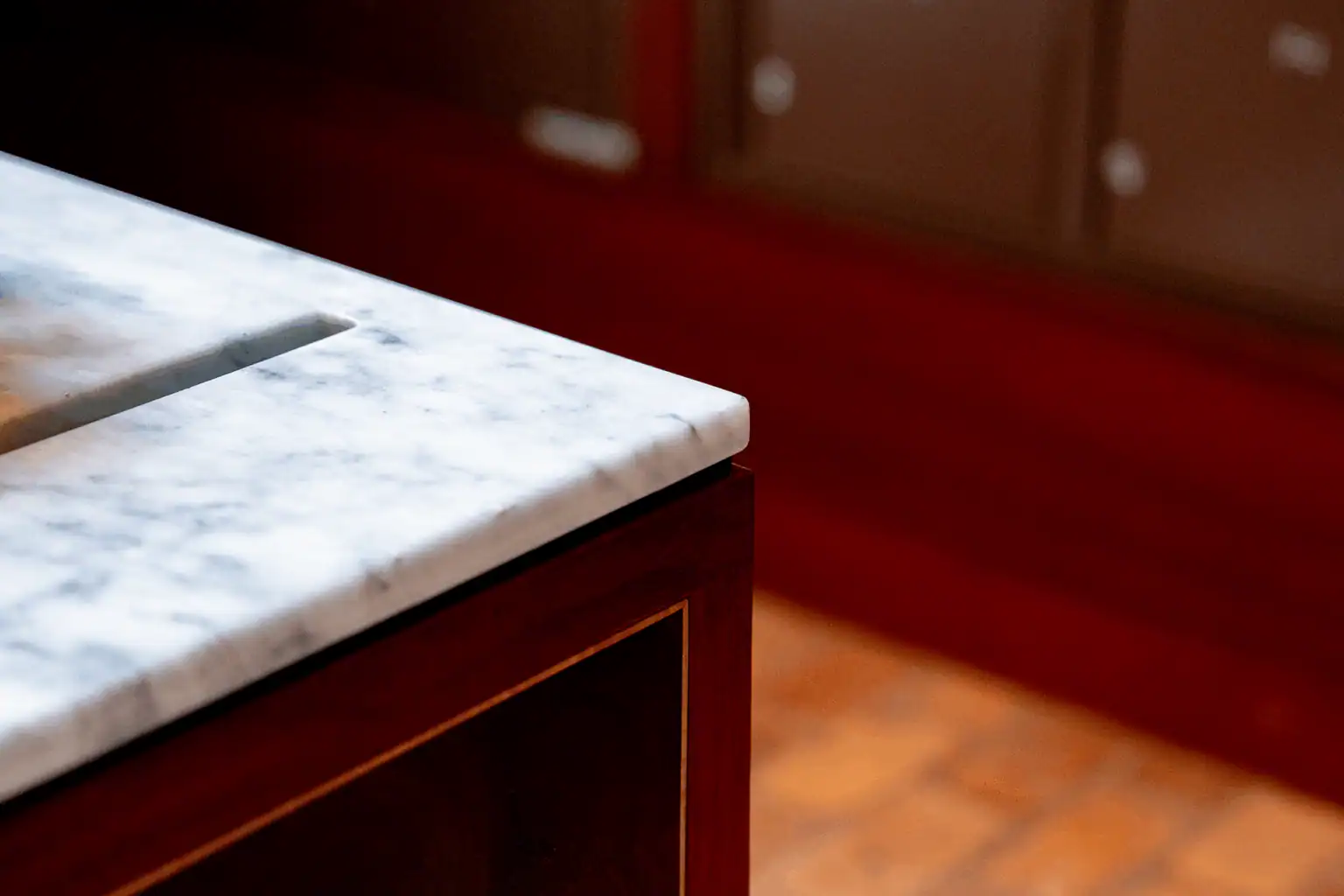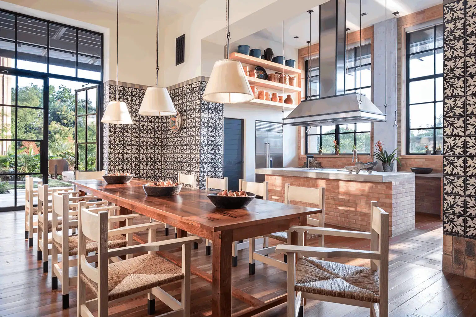 The interior spaces of Cellars at the Pearl are thoughtfully designed to foster a sense of community among residents. Common areas include a front reception room, library, conference room, kitchen, garden room, and mail room. These spaces are adorned with materials that reflect the region’s history, such as Indianola long-leaf pine planks and local D’Hanis brick. The library, for instance, features a curated collection of books about Texas, enhancing the cultural ambiance of the space.
