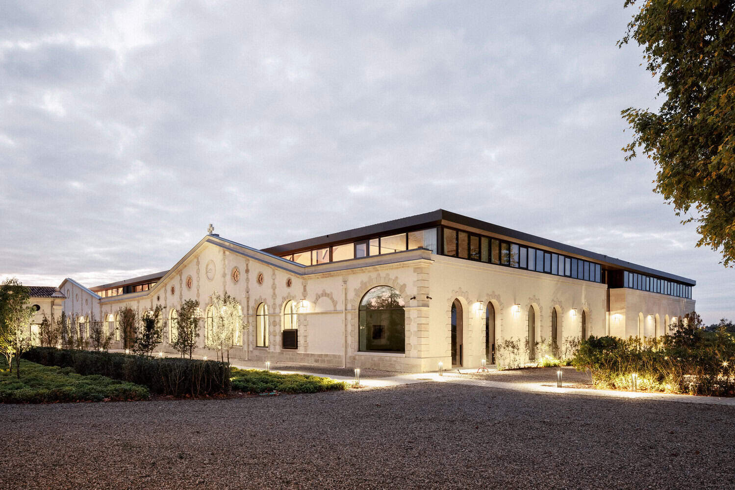 The project aimed to make Château Cantemerle both a functional production site and a welcoming space for visitors. The spaces were redesigned according to principles of fluidity, ergonomics, and sustainability, while preserving the character of the site. The architects worked to unify volumes and materials, ensuring that the stone buildings, slate or tile roofs, and tree-lined pathways in the park form a composition where old and new coexist harmoniously.