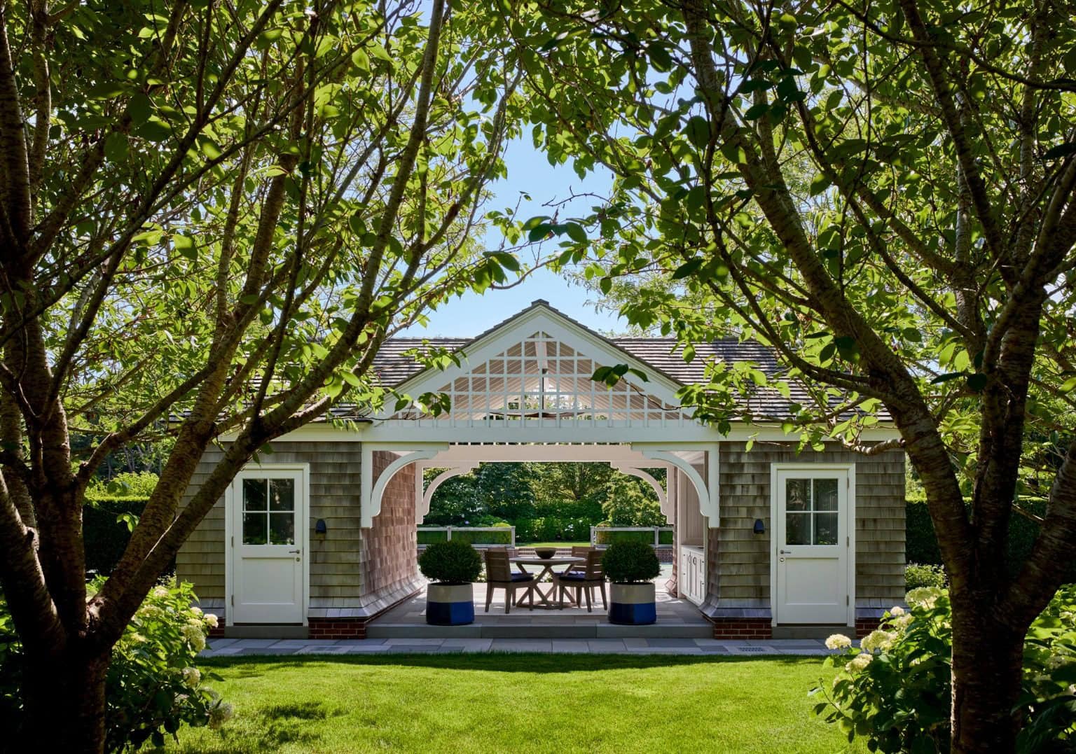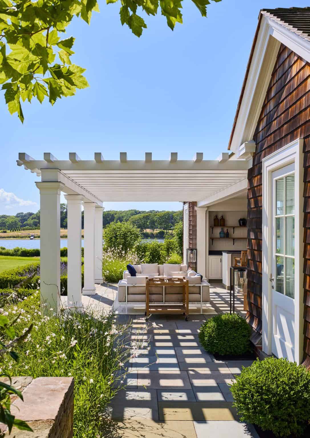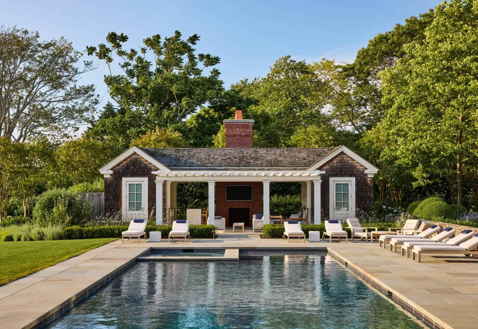 East End House, designed by Peter Pennoyer Architects, is a distinguished villa located in Southampton, United Kingdom. Completed in 2015, this residence exemplifies the firm’s commitment to blending traditional architectural elements with contemporary design. The villa’s design draws inspiration from the shingle style, a vernacular architecture known for its use of natural materials and harmonious integration with the landscape. This style is characterised by soft shapes, gambrel roofs, and intersecting eaves, creating a sense of both austerity and playfulness. The incorporation of these elements provides a timeless aesthetic that resonates with the surrounding environment.