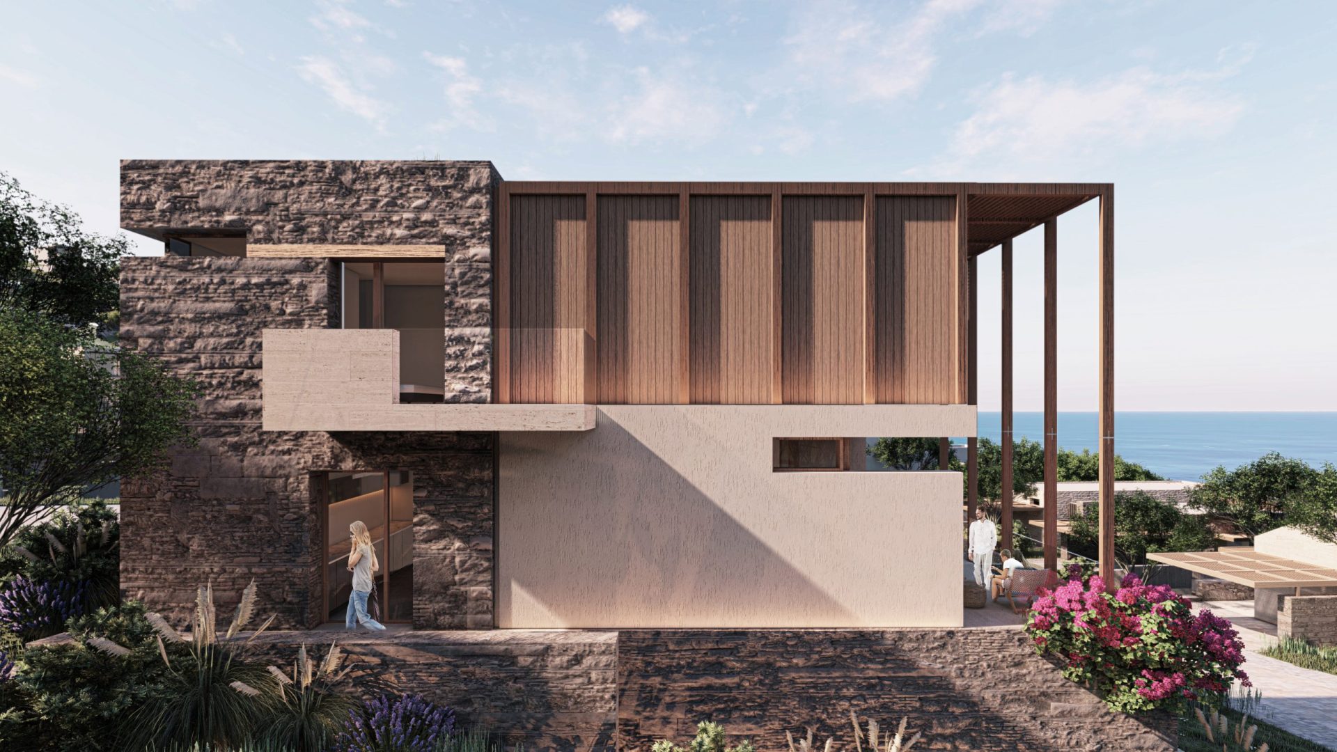 The architectural approach of Green Coast II reflects the unique charm of Mediterranean coastal villages. The design emphasises blending with the topography, using simple and local materials, and adopting a fragmented approach that scales with the human experience. This strategy ensures that the development harmoniously integrates with the rocky landscape, preserving the natural texture of the area.