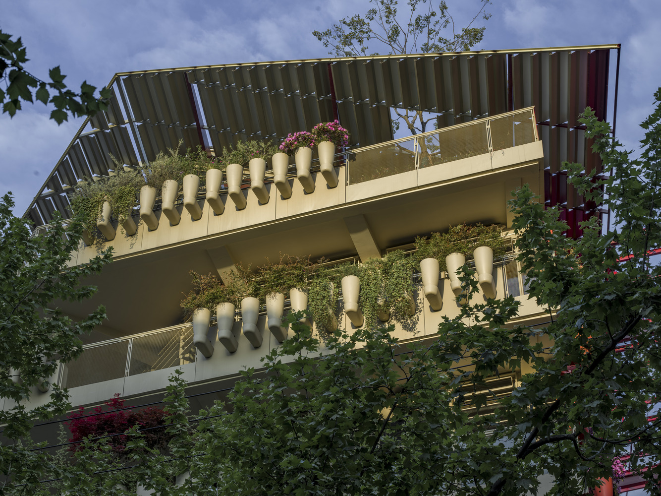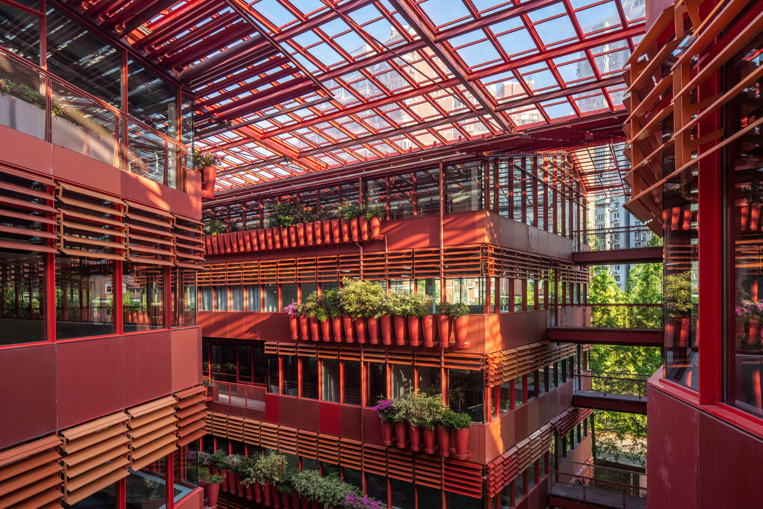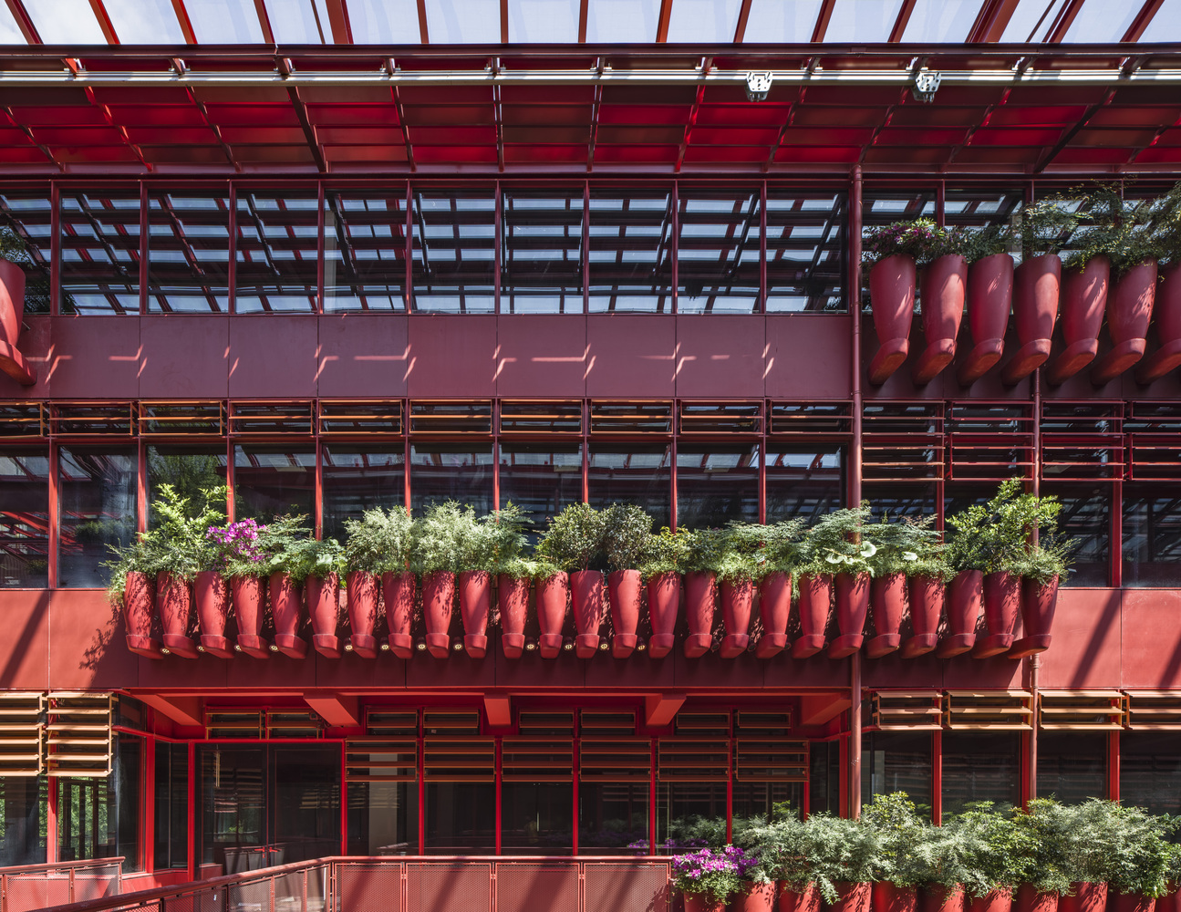 A distinctive element of the design is the “street of 1000 red jars,” where rows of earthenware jars planted with various species of plants form floral walls along the passageway. This feature introduces a naturalistic touch, enhancing the urban landscape with seasonal colours and floral diversity.