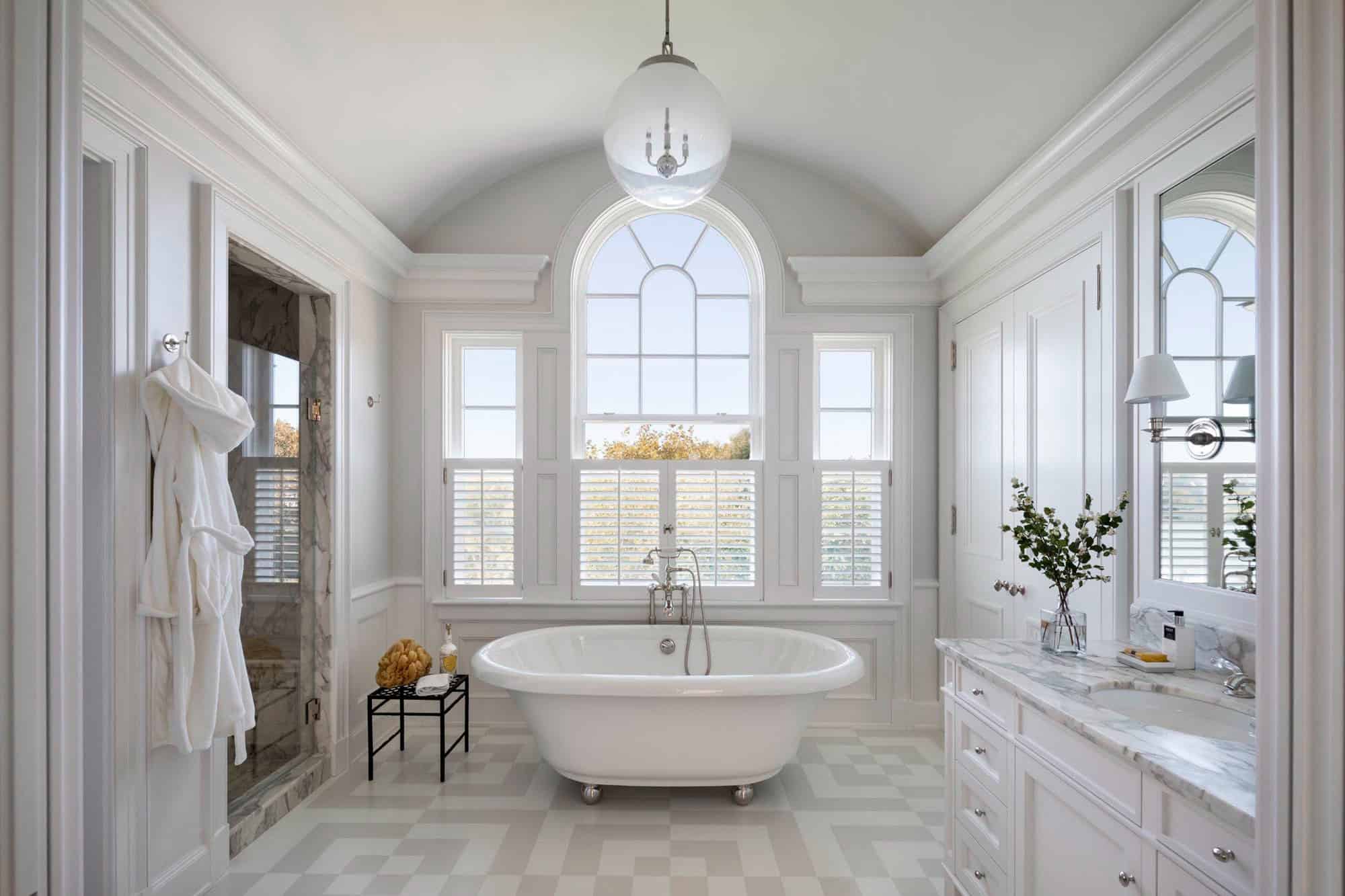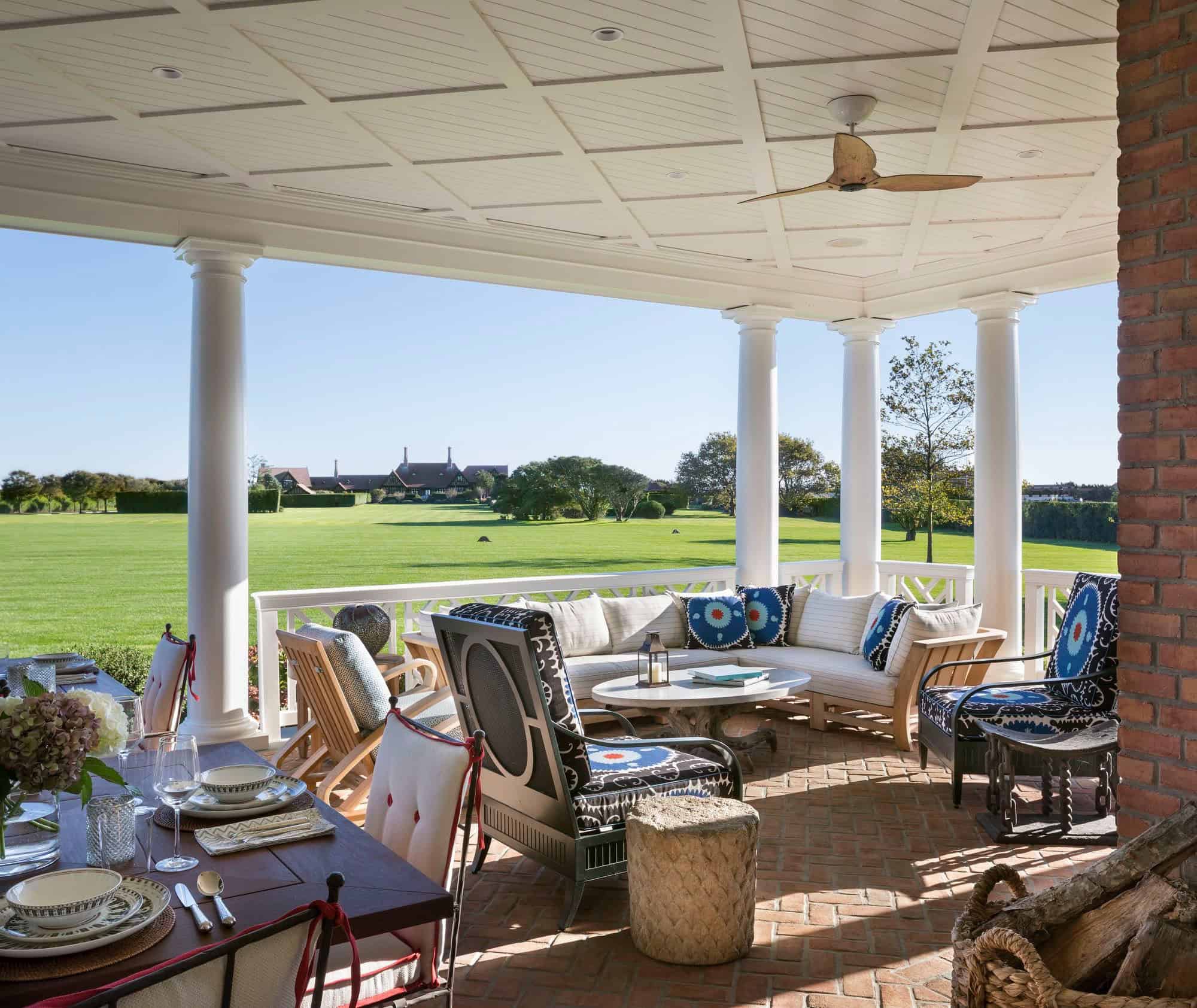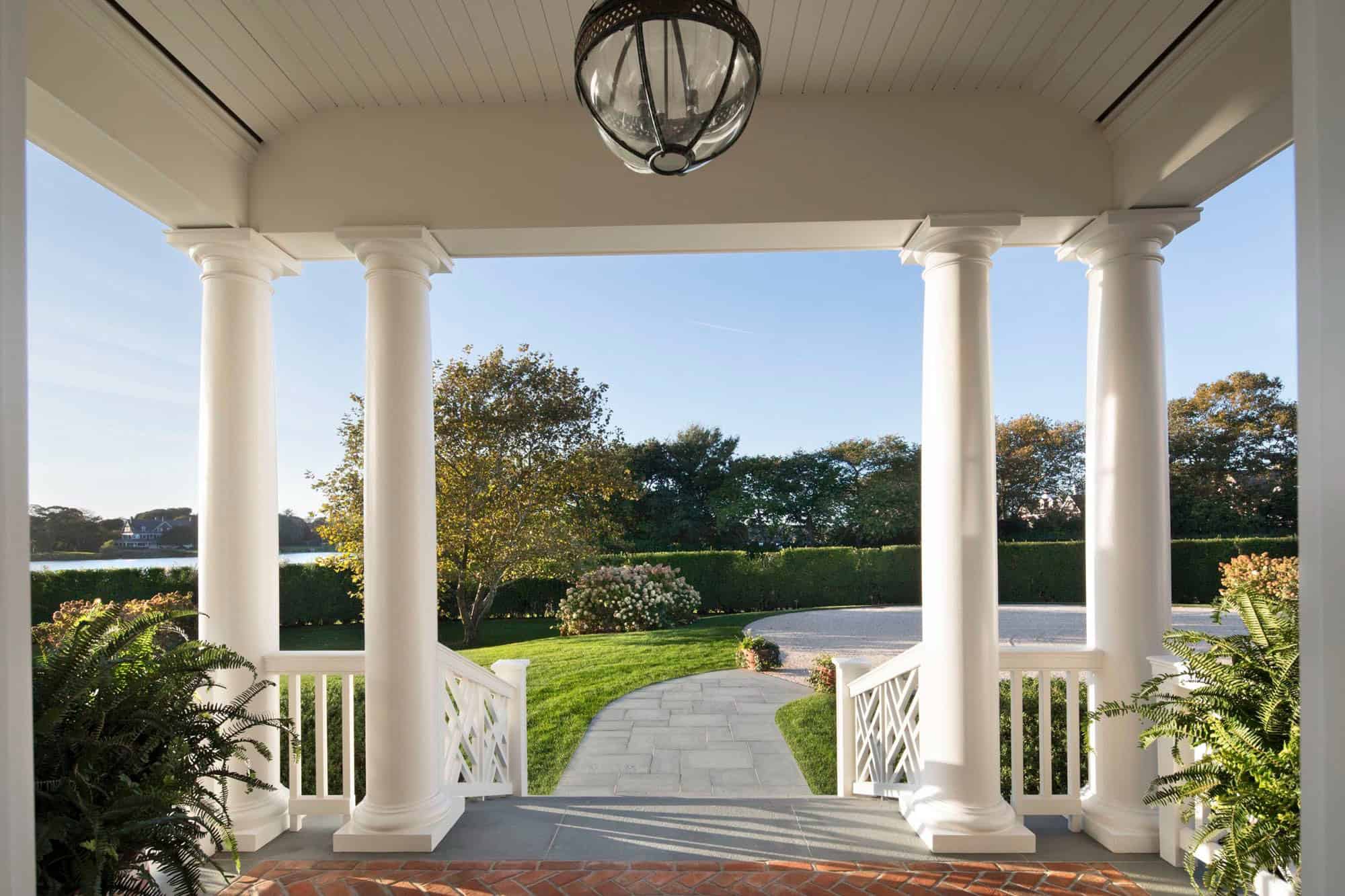 A distinctive feature of the House on Gin Lane is the triple-arched porch on the west facade, offering expansive views over Lake Agawam. This design element is inspired by Wyndecote, the nearby 1887 house of noted architect Robert Henderson Robertson. The porch serves as a focal point, seamlessly connecting the interior spaces with the surrounding natural landscape.