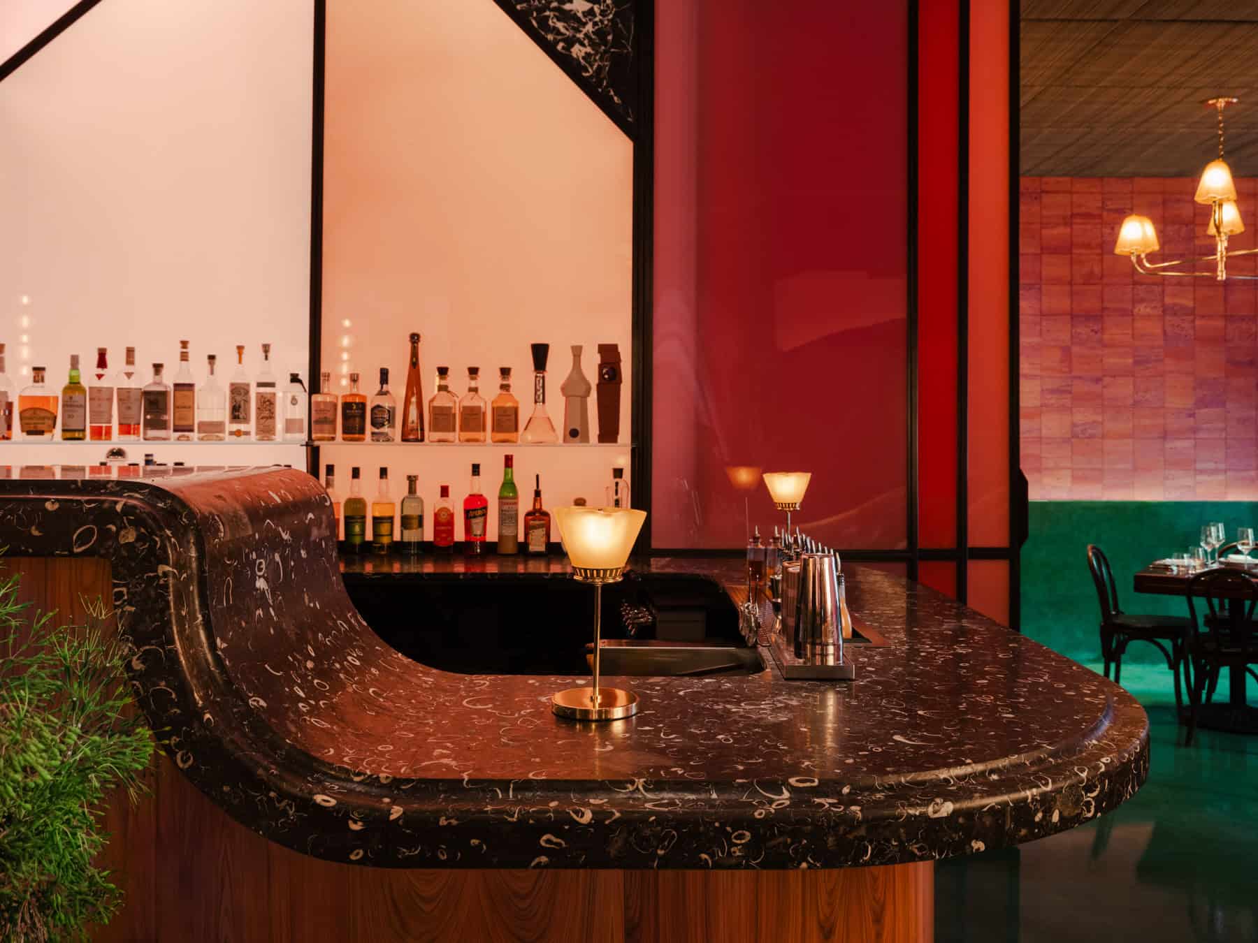Designed by GRT Architects, known for their work on Don Angie, Bad Roman, and San Sabino, Limusina showcases a bold, retro-futuristic aesthetic. The design draws inspiration from cinematic surrealism, reminiscent of Blade Runner’s reinterpretation of the Ennis House and Bradbury Building. This influence is evident in the juxtaposition of warm lighting, geometric patterns, and unexpected material contrasts throughout the space.