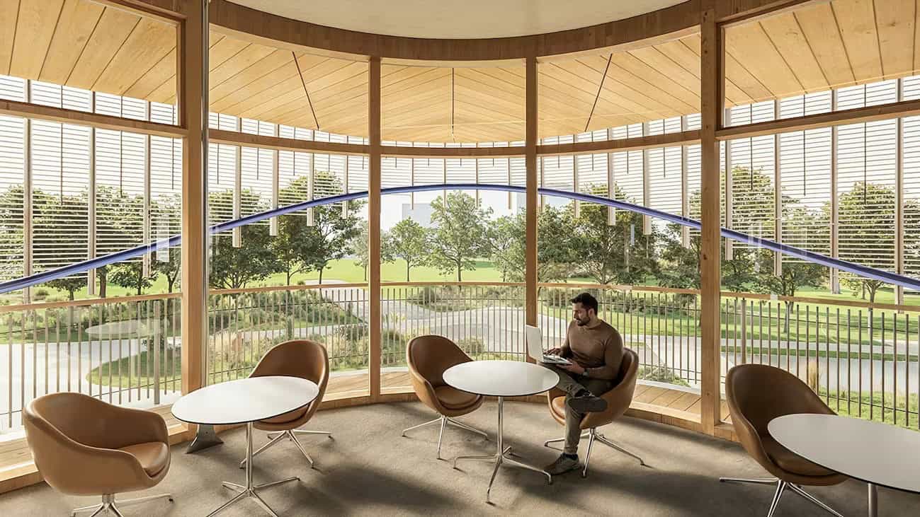 The proposal for HEC Paris’s new campus also emphasises inclusivity and community spirit. The design aims to bring together students, professors, and staff from over 130 different nationalities, ensuring that each student, regardless of background, origin, or life path, has a transformative experience. Residences, cultural spaces, and sports facilities are being reimagined to celebrate diversity, self-expression, and community living. The campus is envisioned as a thriving, supportive community—open, engaged, and resilient—where individuals can learn, express themselves, take risks, bounce back, and succeed.