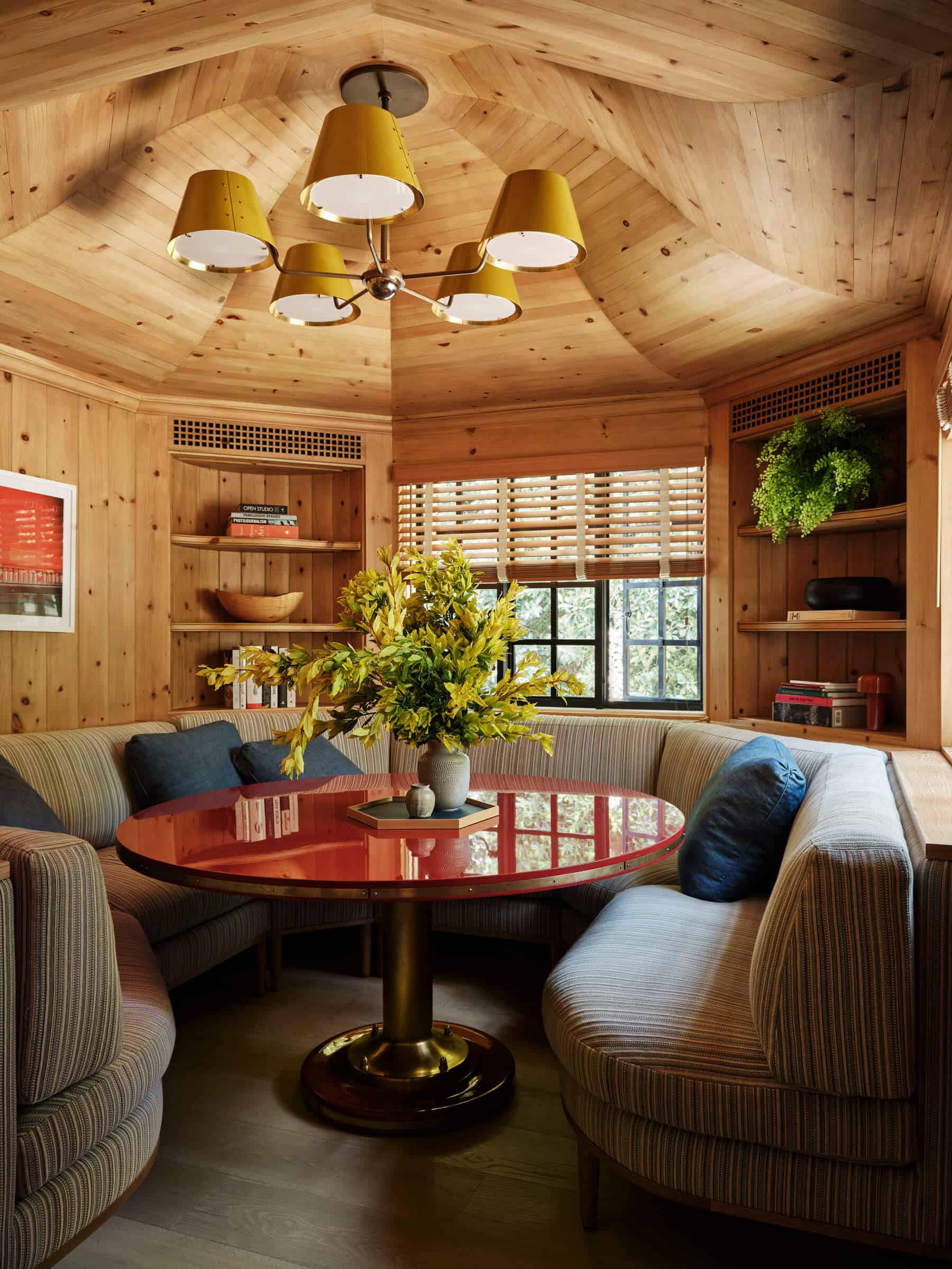The main floor underwent a revitalisation to become the heart of the home. A new kitchen was introduced, and the dining room was repurposed to open onto an expansive screened porch, fostering a seamless connection between indoor and outdoor living spaces. A winding staircase leads to a game room below, while an octagonal breakfast room with windows on three sides provides a cosy nook adjacent to the kitchen.
