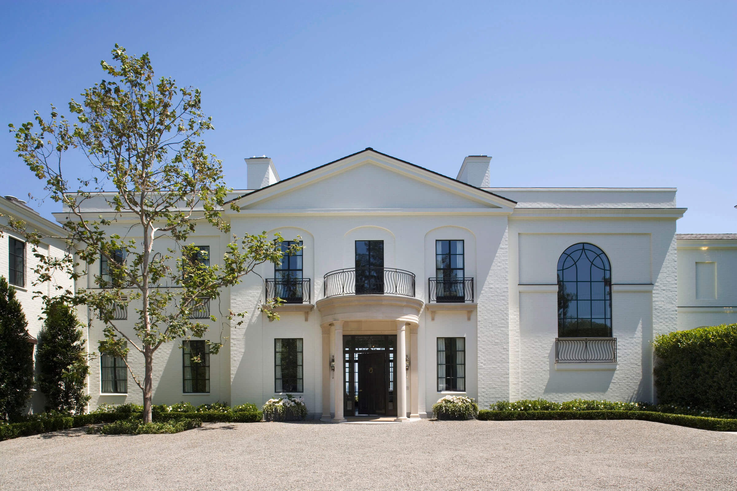The choice of materials and design elements in the Residence in California further reflects the architects’ attention to detail and their commitment to quality. The use of durable materials such as painted brick and limestone ensures the longevity of the structure, while the decorative ironwork adds a layer of artistry and craftsmanship. These elements not only contribute to the visual appeal of the residence but also speak to a broader cultural appreciation for quality and tradition in design.