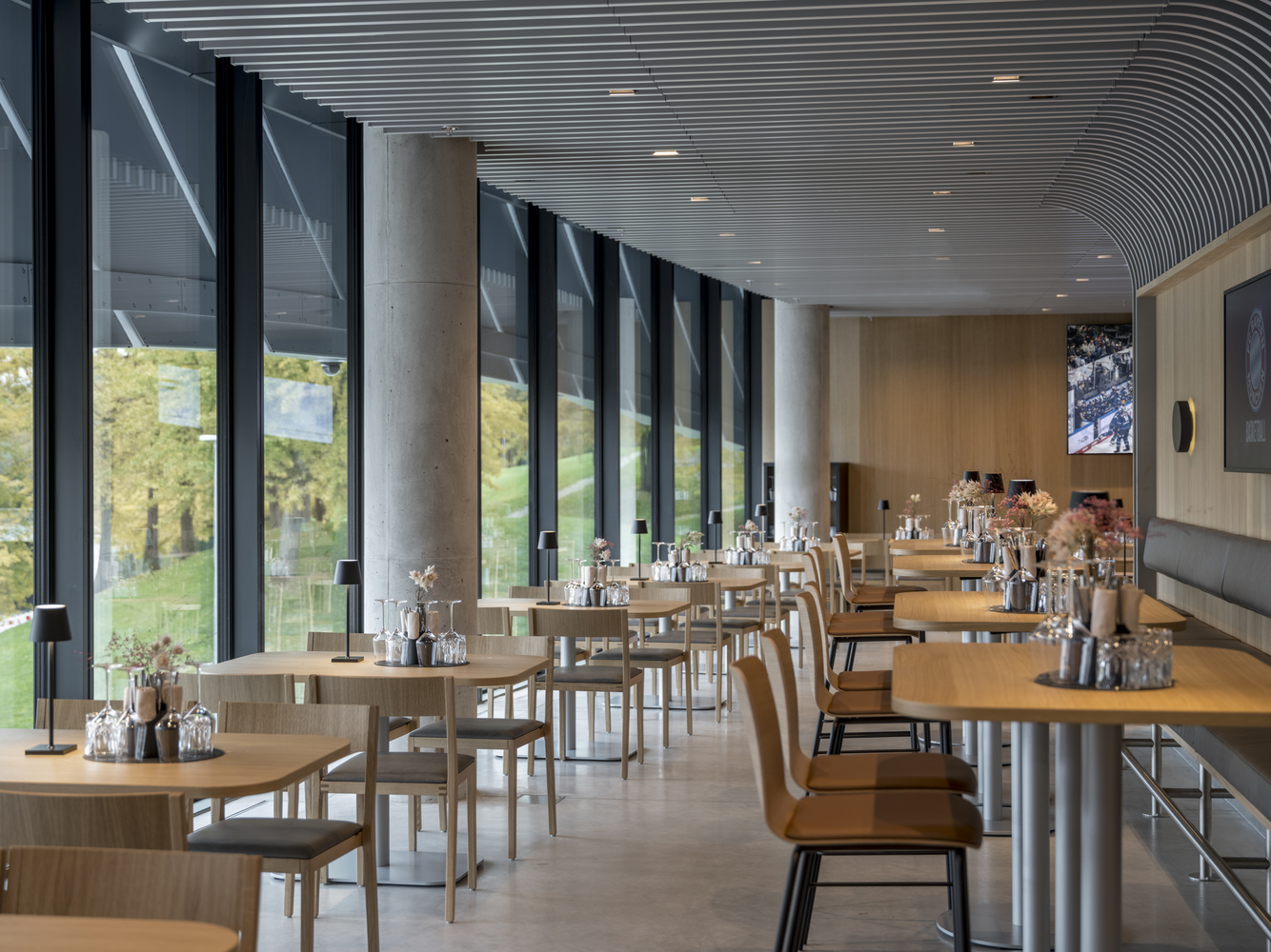 The arena’s interior is designed with versatility in mind. It boasts a seating capacity of 10,796 for ice hockey and 11,500 for basketball, facilitated by an innovative grandstand system that adjusts to the specific requirements of each sport. Beyond the main arena, the complex includes three additional ice rinks, concealed beneath an artificial hill, which serve as training facilities and are accessible to the public, schools, and sports clubs year-round. This commitment to community engagement underscores the arena’s role as a hub for grassroots sports development.