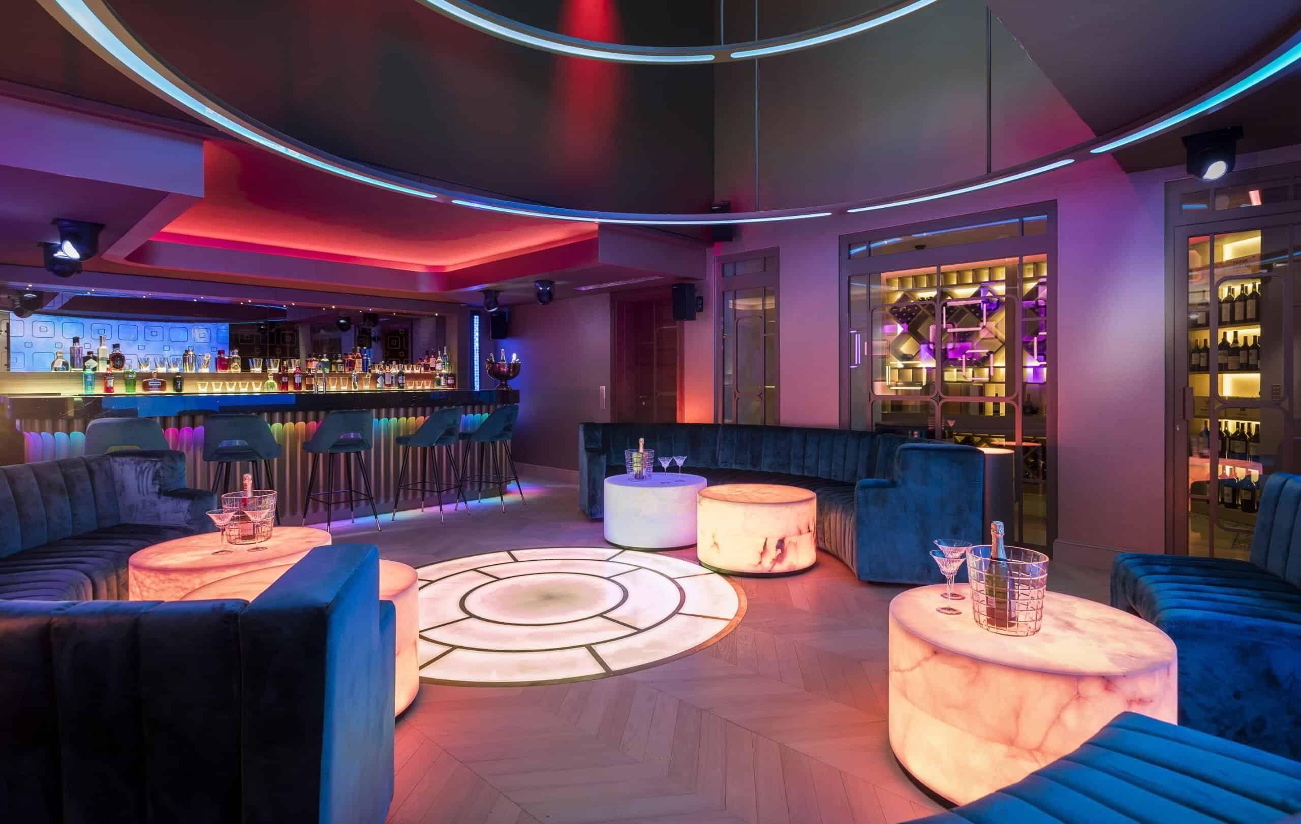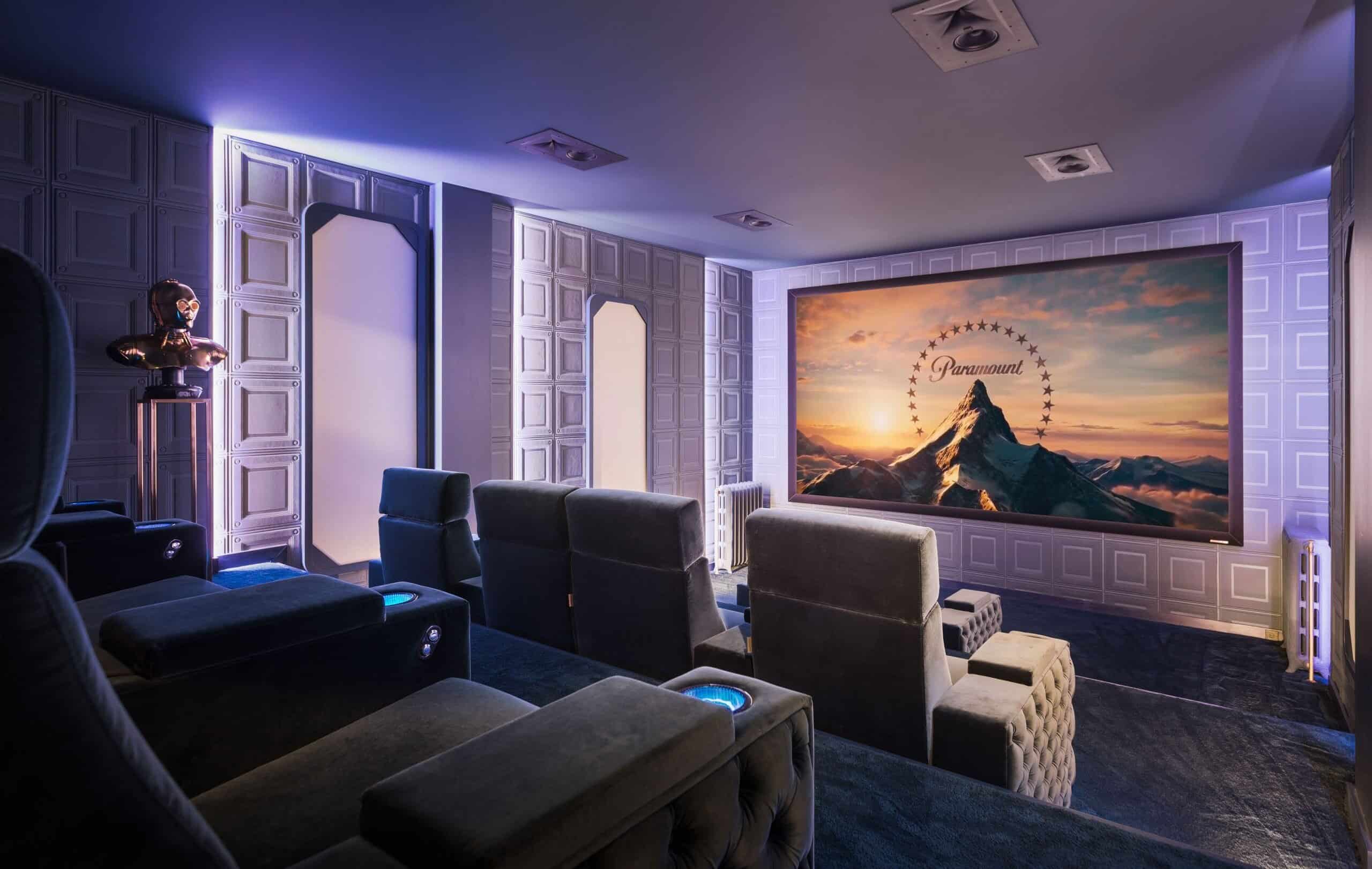 For entertainment, the double-height nightclub with a DJ station and dancers’ balconies on the upper levels provides an exceptional venue for hosting guests. Adjacent to the nightclub is a 12-seat movie theatre, equipped with the latest technology—a 4K projector with 17 speakers, Dolby Atmos sound, DTS, and Auro 3D—ensuring an immersive cinematic experience. The wine cellar offers exquisite wine domains that make the experience unforgettable.