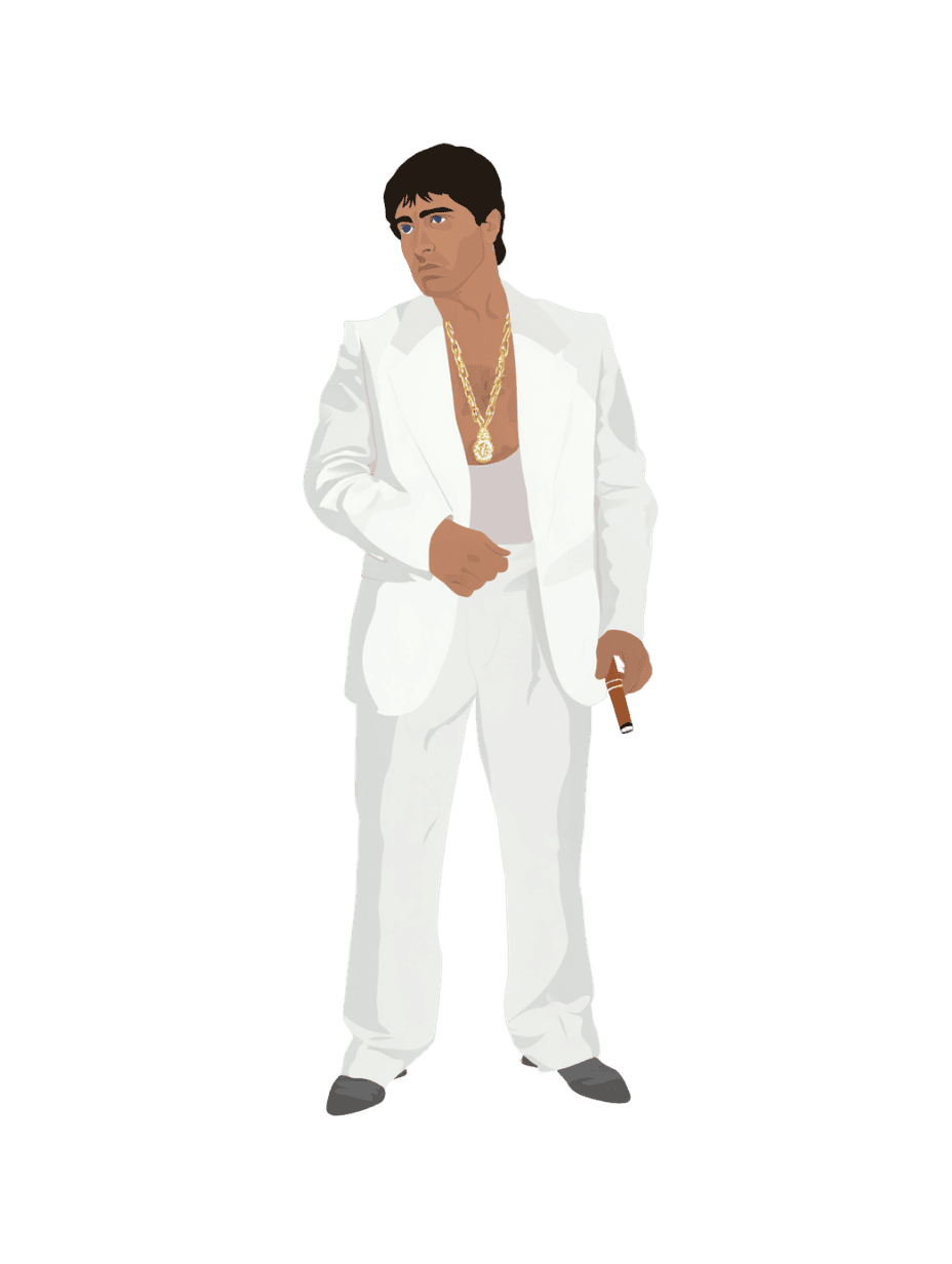 Yes — you can download and use this cutout of Tony Montata/Scarface in student work, portfolios, and presentation material.